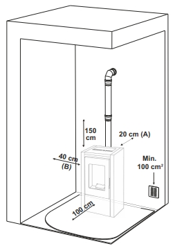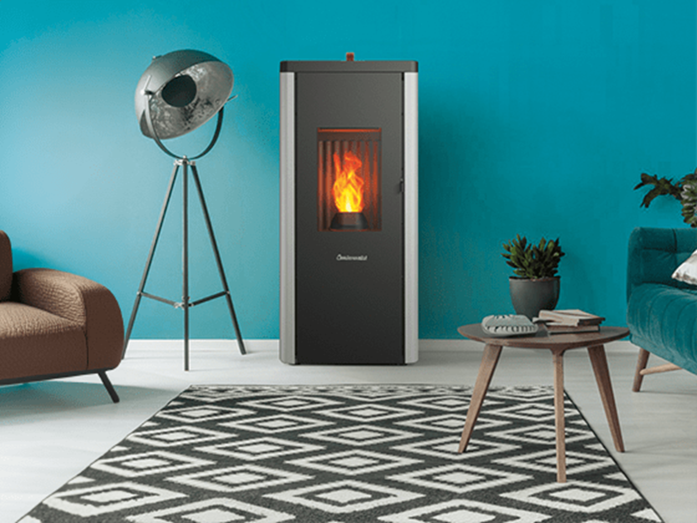 Sobna peč na pelete za toplozračno ogrevanje z vpihavanjem toplega zraka v prostor