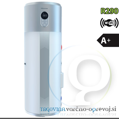 Toplotna črpalka Hisense AH-250U4GBC00 z energijskim razredom A+ se uvršča med najboljše energijsko učinkovite črpalke na evropskem trgu. Ta model se ponaša z vgrajenim toplotnim izmenjevalnikom, kar omogoče ogrevanje sanitarne z dodatnim virom (npr. kotel na lesno biomaso) ter z okolju prijaznim hladilnim sredstvom R290, ki prispeva k doseganju novih evropskih ciljev glede emisij CO2. Zagotovo pa je ena večjih prednosti sanitarnih toplotnih črpalk Hisense tudi možnost upravljanja preko interneta.